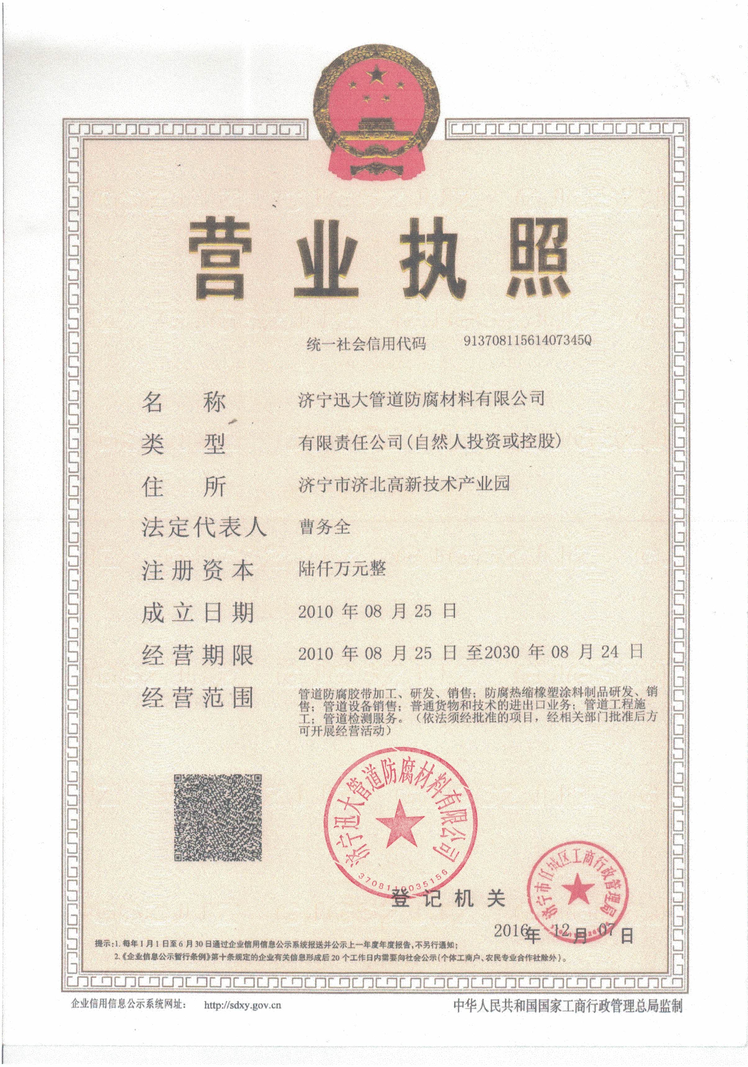 濟(jì)寧迅大管道防腐材料有限公司是國(guó)內(nèi)規(guī)模大、防腐產(chǎn)品齊全、設(shè)備先進(jìn)、質(zhì)量穩(wěn)定的集研發(fā)、生產(chǎn)、銷(xiāo)售的綜合性防腐、防水材料生產(chǎn)企業(yè)。 防腐主要產(chǎn)品有:聚乙烯管道防腐膠帶、聚乙烯膠粘帶、聚丙烯防腐膠帶、鋁箔防腐膠粘帶、丁基防水膠帶、管道膠帶、輻射交聯(lián)聚乙烯防腐熱收縮套、熱收縮帶、管道防腐防水熱縮帽、防腐帶等管道防腐產(chǎn)品?!”竟緸楣煞葜破髽I(yè),投資總額4200萬(wàn)元,注冊(cè)資本600萬(wàn)元。固定資產(chǎn)2190萬(wàn)元,流動(dòng)資產(chǎn)4271萬(wàn)元,凈值2890萬(wàn)元?! 」締T工198人,技術(shù)人員32人,銷(xiāo)售…